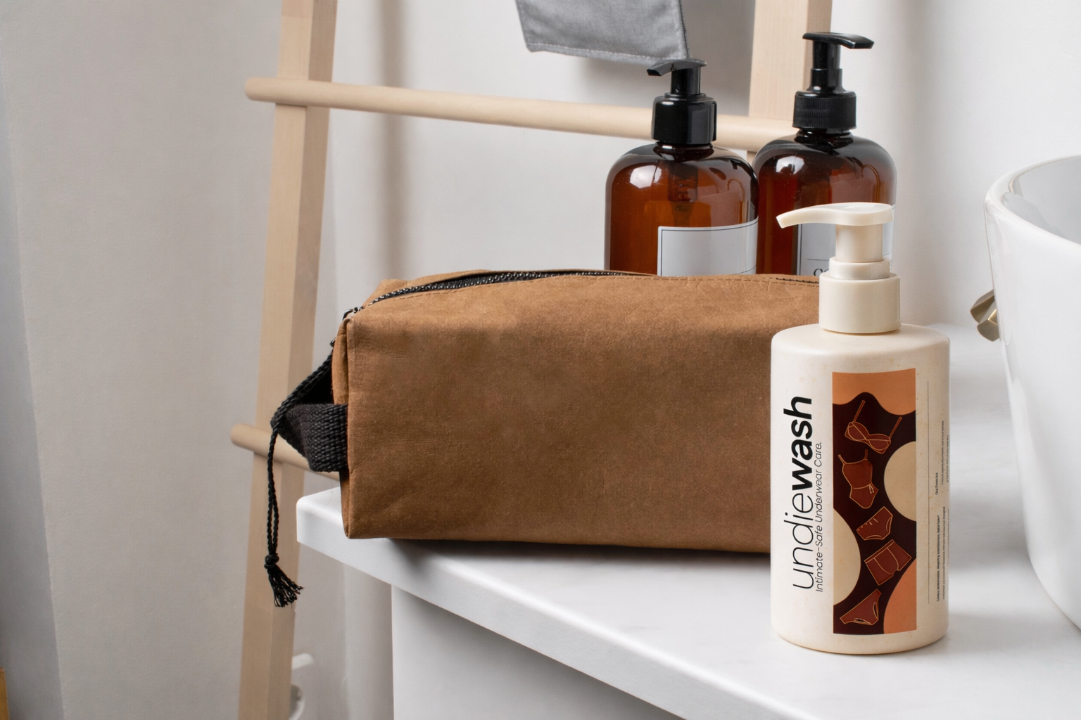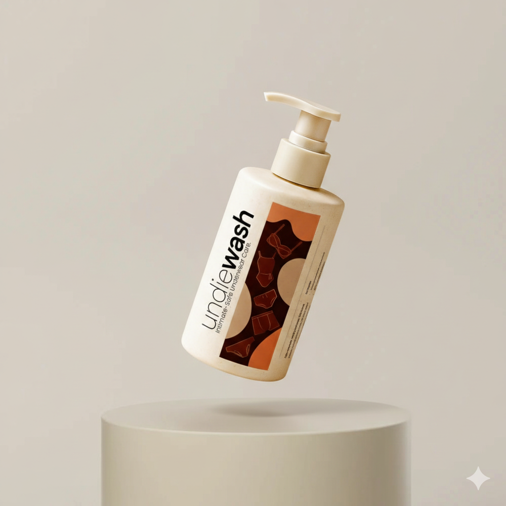 Undiewash is a unisex, pH-balanced, non-toxic intimate-safe cleanser designed for underwear, period panties, boxers, and delicate fabrics. It gently removes buildup, odour, and residues without harsh chemicals or fragrance, supporting comfort, freshness, and reproductive wellbeing with every wash, every day.